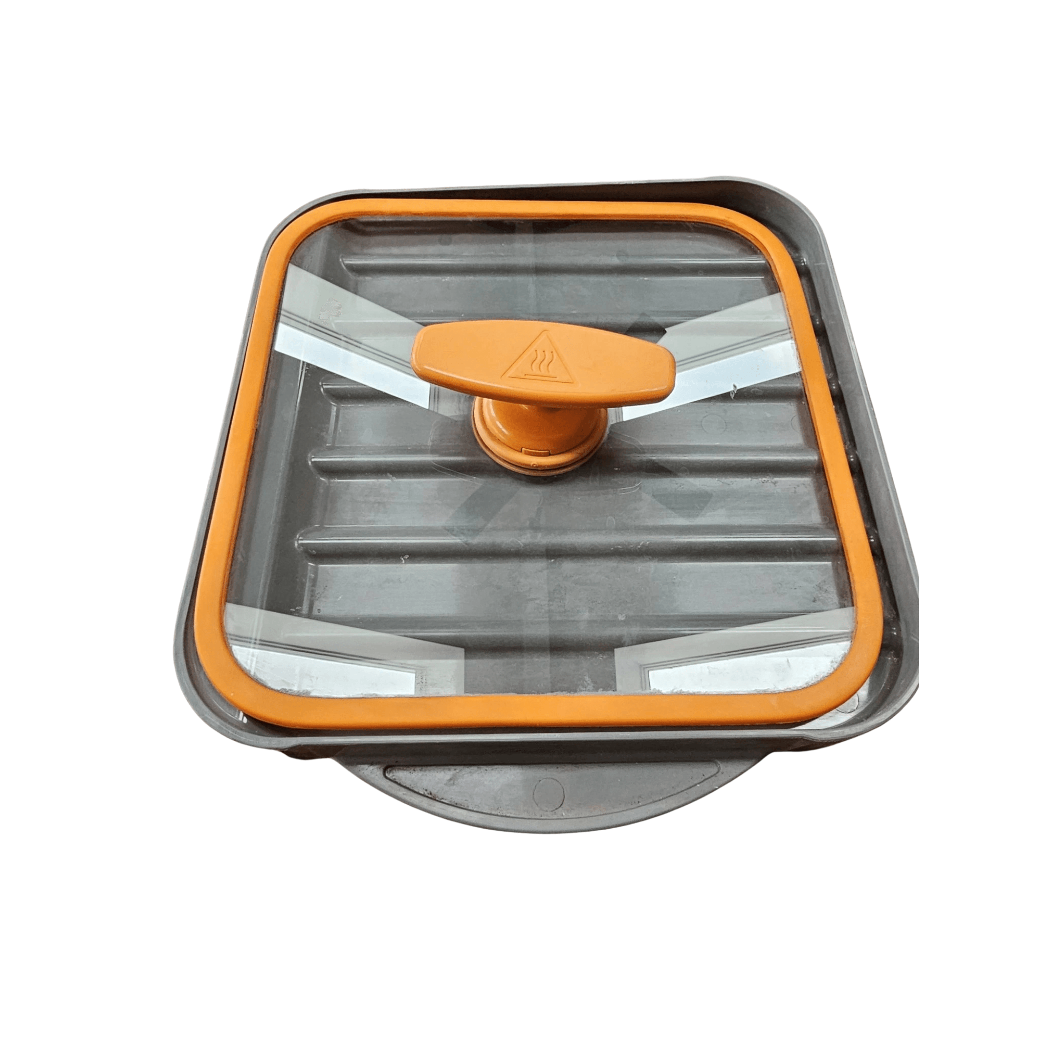 - Tempered glass lid flattens bacon for even cooking